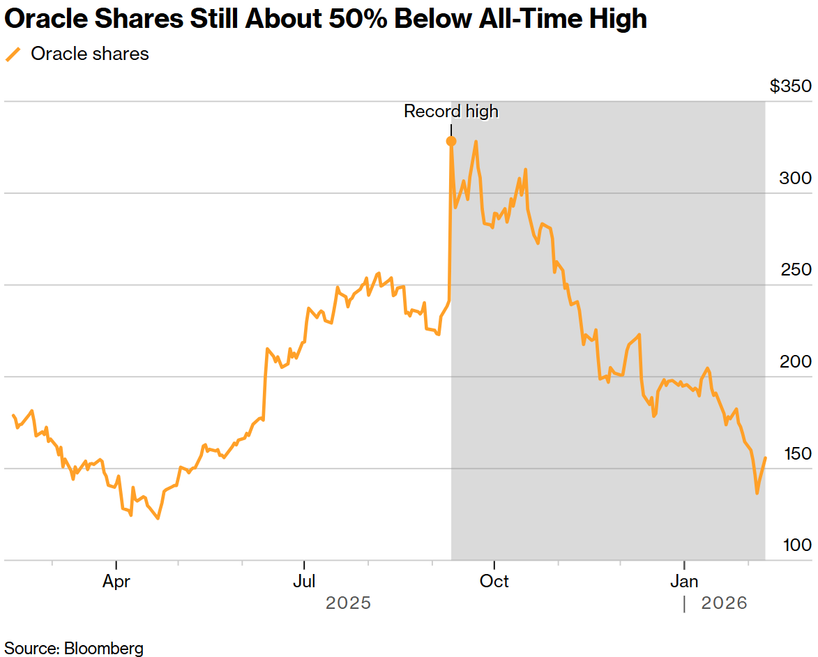 这家软件行业风向标企业的股价盘中一度上涨12%,创下自9月10日以来的最大盘中涨幅,截至收盘涨幅缩窄至9%。尽管此前亚马逊(AMZN.US)承诺今年将投入2000亿美元用于数据中心、芯片及其他设备,但即便在周一反弹之后,甲骨文的股价较9月份的高点仍下跌了约50%。