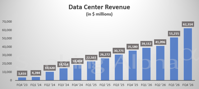 财报显示,在截至1月25日的2026财年第四财季,英伟达营收同比增长73%,至创纪录新高的681亿美元,好于分析师普遍预测的659亿美元。按业务划分,数据中心业务(负责其行业领先的AI加速器和网络产品)第四财季营收同比增长75%至623亿美元,同样创纪录新高,好于分析师普遍预测的604亿美元。不过,其他业务表现相对较弱。游戏业务(曾是英伟达营收的主要来源)营收同比增长47%至37.3亿美元,低于分析师普遍预测的40.1亿美元;汽车业务营收同比增长6%至6.04亿美元,不及分析师普遍预测的6.43亿美元。