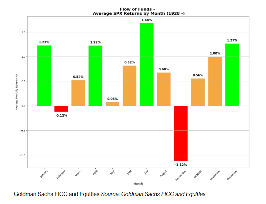 不过,根据高盛交易员的说法,3月全球股票市场的季节性表现呈现出喜忧参半态势。回溯至1928年,这个月份在标普500指数的月度表现中排名第四差,而上半月在历史上通常表现相对震荡。尤其是在从3月1日到3月14日这段时间,标普500指数平均仅仅上涨30个基点,但随后表现往往改善,从3月15日开始的两周平均上涨80个基点。