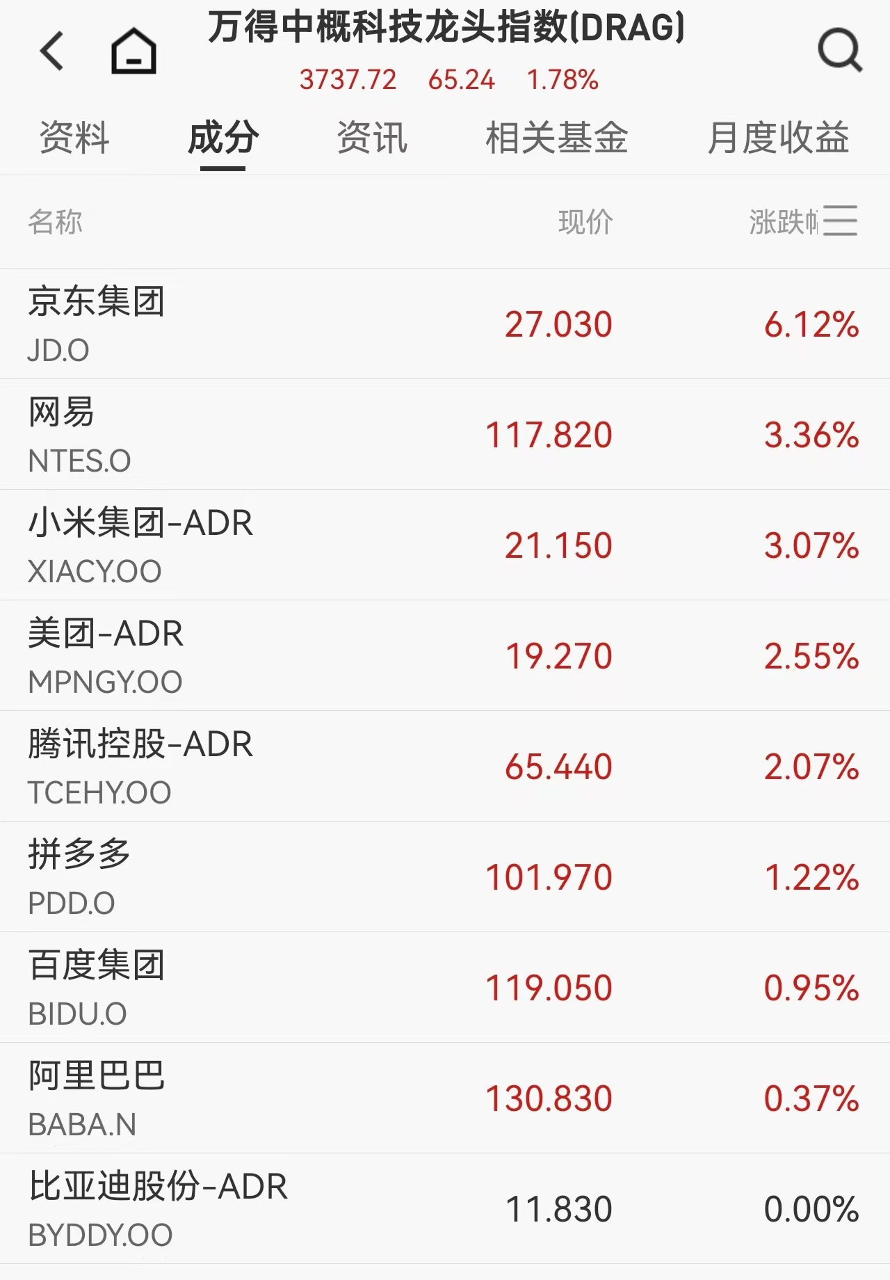 中概股多数逆势走强,成为市场中少有的亮点。纳斯达克金龙中国指数初步收涨0.7%,尽管全周累计仍下跌约4.2%,但单日的逆势表现依然亮眼。热门中概股中,京东涨6.1%,小鹏、携程、网易、金山云涨幅最高达5.9%,小米涨3%,美团、腾讯涨超2%,阿里巴巴涨0.4%;也有部分个股走弱,阿特斯太阳能跌3.7%,小马智行跌8.5%。
