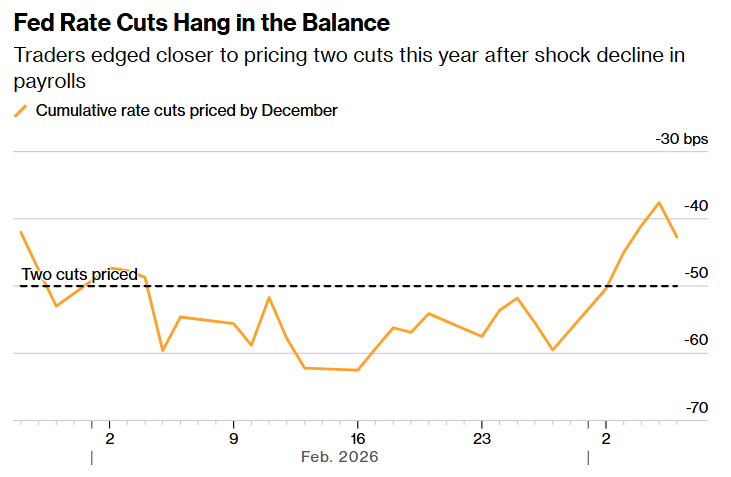 由于通胀率持续高于美联储2%的目标,交易员们甚至在冲突爆发前就已下调了今年降息的预期,同时押注如果经济最终放缓,美联储将在2027年进一步放松货币政策。快速升级的战争和能源供应中断的威胁促使一些交易员押注2026年不会降息,但上周五的非农就业报告使市场普遍预期今年可能会降息两次,每次降息幅度为25个基点。
