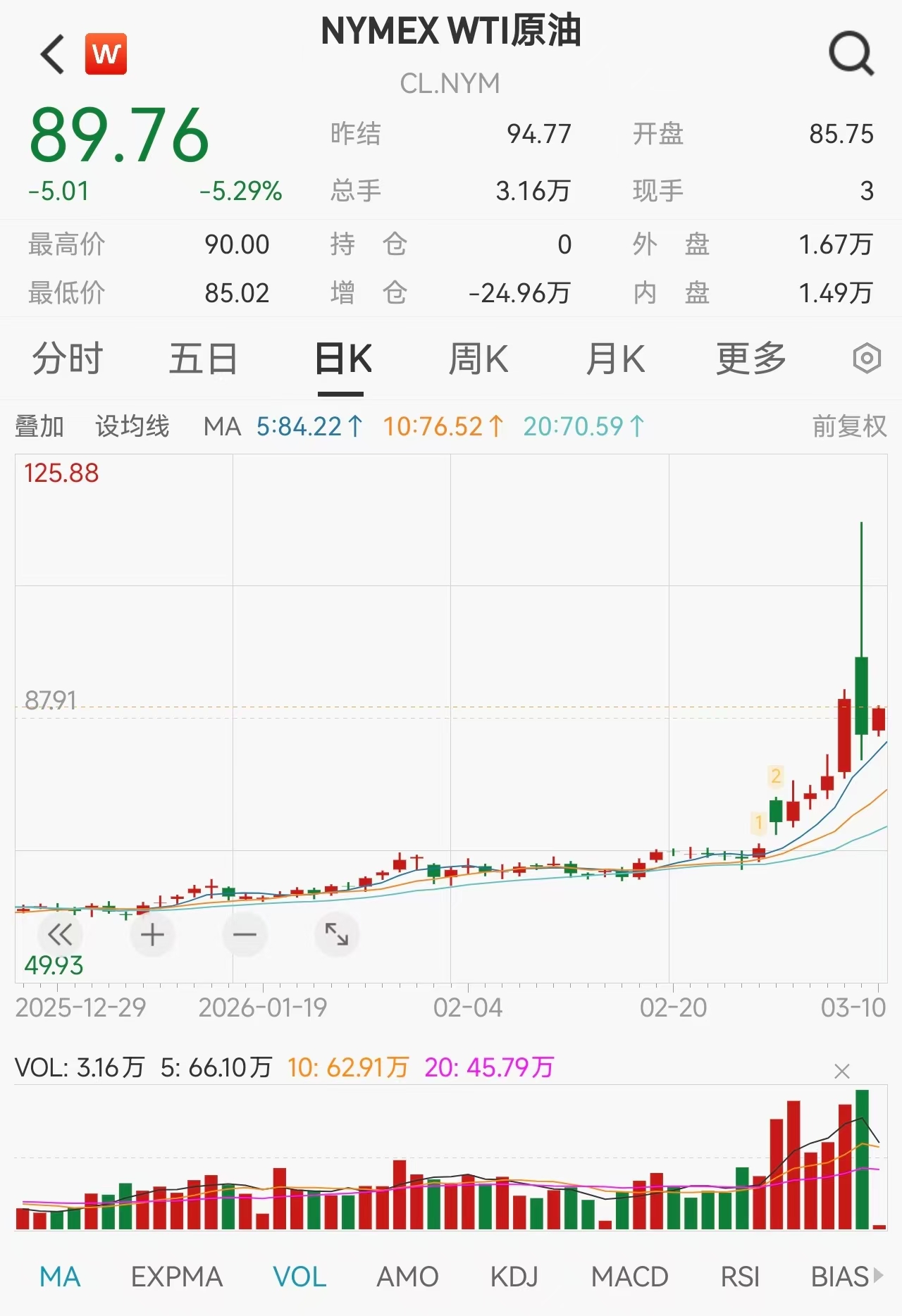 大宗商品市场波动更为剧烈。原油价格在特朗普表态后上演“高台跳水”,WTI原油期货盘后跌幅迅速扩大至10%,一度失守85美元/桶关口,布伦特原油亦跌破90美元。今晨,WTI原油显著低开,截至发稿,价格在89.76美元/桶,日内跌5.29%。