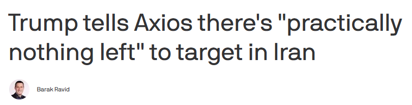 特朗普称伊朗战争“很快结束”!放话“已几乎无目标可打”,美以却准备继续猛轰