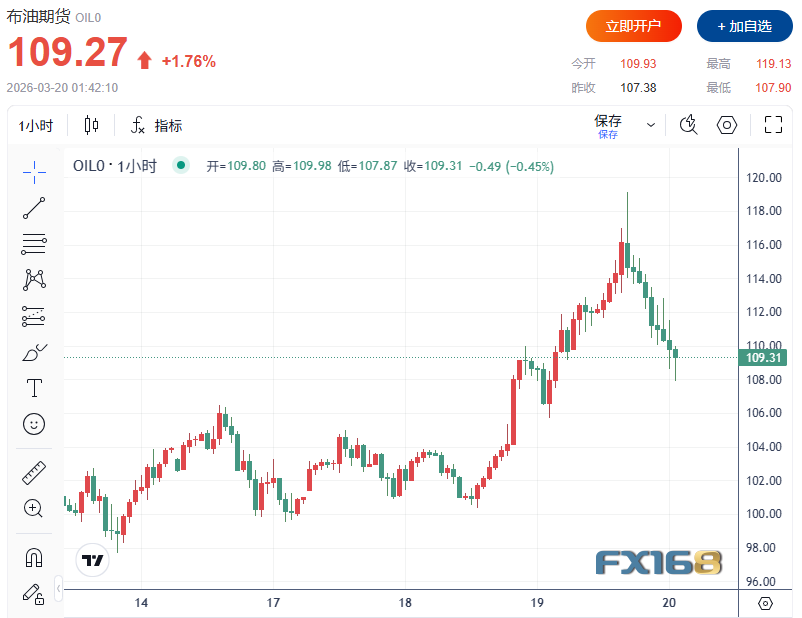布伦特原油盘中一度升破119美元/桶,随后回落但仍维持在110美元附近;美国WTI原油也升至97美元上方。欧洲天然气基准价格单日涨幅超过16%,显示市场已开始对潜在供给缺口进行更激进定价。
