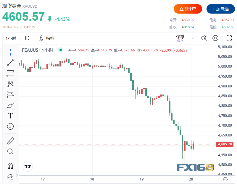 尽管地缘局势持续升级,黄金却没有展现出传统意义上的避险强势,反而出现剧烈回调。周四黄金期货一度暴跌6%,跌至4502美元略上方;白银跌幅更大,一度下挫10%至13%;铜价也同步走弱。