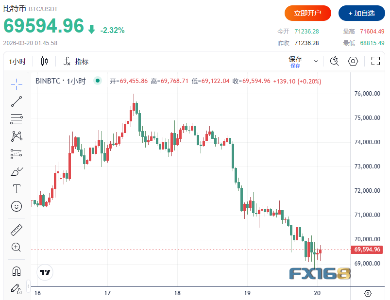 数字资产同样未能摆脱全球市场去风险浪潮的冲击。比特币周四跌破7万美元,日内跌幅约2%至3%;以太坊跌约4%,XRP、BNB和Solana等主流代币也普遍回落,但整体跌幅大多控制在3%以内。