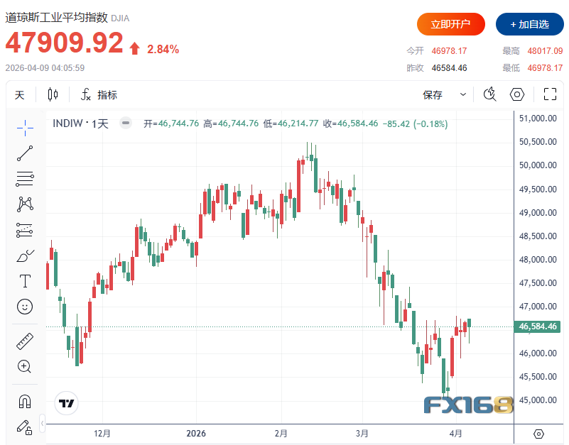 道琼斯工业平均指数暴涨1325.46点,涨幅达2.85%,收报47909.92点,创下近一年来最大单日涨幅。上一次道指录得如此强劲表现,还是在2025年4月,当时特朗普首次就最初宣布的强硬关税措施作出退让。