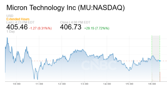 个股方面,博通上涨逾5%,美光科技涨幅超过7%。