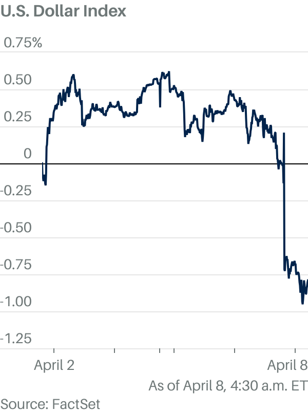 周三(4月8日),美元显著走弱,几乎抹去年内全部涨幅。道琼斯市场数据显示,衡量美元兑欧元、日元等一篮子主要货币表现的美元指数(DXY)下跌1%,有望录得自2025年4月21日以来最大单日跌幅,显示停火消息正迅速削弱美元的避险吸引力。