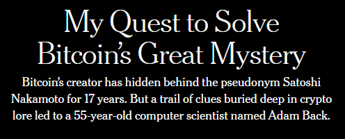 然而,在一项结合人工智能与法医语言学的长期调查之后,《纽约时报》声称,已经揭开这位隐匿超过17年的比特币创始人的真实身份。