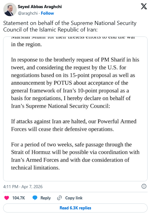 不过,在最后期限到来前不到两小时,特朗普宣布将原定军事打击计划暂停两周,条件是“伊朗伊斯兰共和国同意霍尔木兹海峡实现全面、立即且安全的开放”。