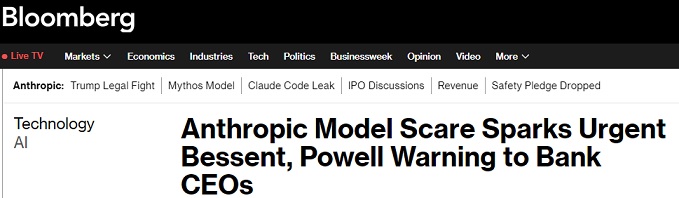 美国彭博社周五(4月10日)发布独家报道称,美国财政部长贝森特(Scott Bessent)和美联储主席鲍威尔(Jerome Powell)紧急召集华尔街高管开会,原因是担心Anthropic PBC最新发布的人工智能模型可能会引发一个网络风险更高的时代。