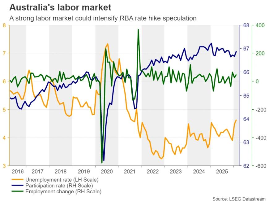 澳元方面,作为风险敏感型货币,在停火消息公布后大幅上涨,单日涨幅一度达到1.75%。如果周四公布的就业数据强劲,可能进一步强化市场对澳洲联储继续加息的预期。