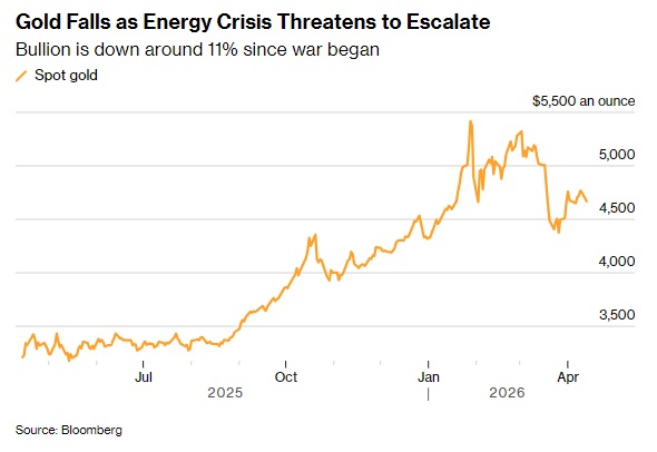 周一(4月13日)亚洲时段交易开始后,金价出现暴跌。美国彭博社称,随着美国与伊朗的和平谈判无果而终,美国计划封锁霍尔木兹海峡,加剧全球能源供应冲击,引发通胀担忧,黄金价格大幅下跌。