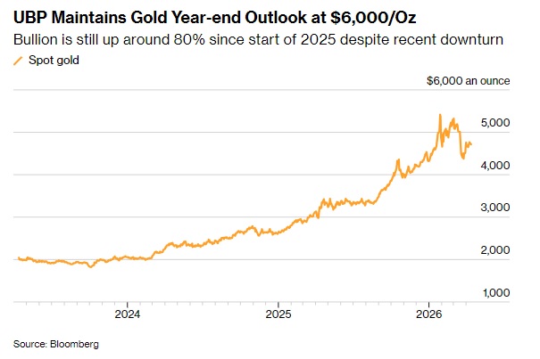 他指出,随着结构性需求依然存在——包括中央银行购买、对财政赤字的担忧以及地缘政治紧张局势——该行仍预计金价将在年底升至6000美元/盎司。