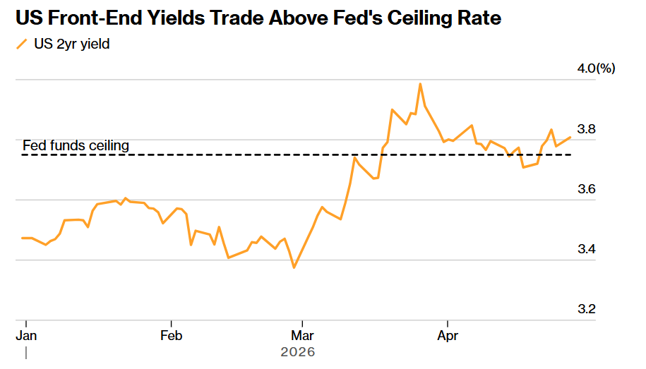 这种低波动环境——至少在现金债券交易中仍然是如此——正促使策略师们把固收收益市场交易目光投向更长期催化剂,因为这位前美联储理事——同时也是美联储主席提名人的沃什本周将面临投票,以便他能够在5月正式接替任期结束的现任美联储主席鲍威尔(Jerome Powell)出任美联储主席。